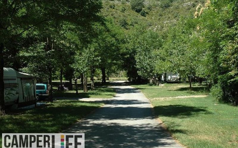 Aperto da aprile a ottobre, il camping si trova sulla riva del fiume e dispone di piazzole ben ombreggiate, piscina e campo da tennis.