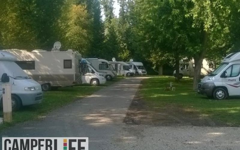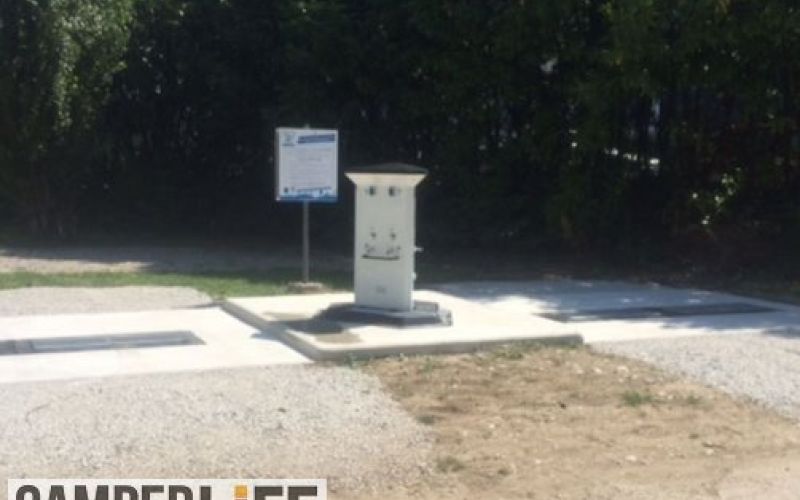 Area attrezzata vicino al lago con 77 piazzole e camper service. Accesso con tessera che viene rilasciata dal dispositivo di pagamento, che accetta solo bancomat o carta di credito. Apertura annuale.