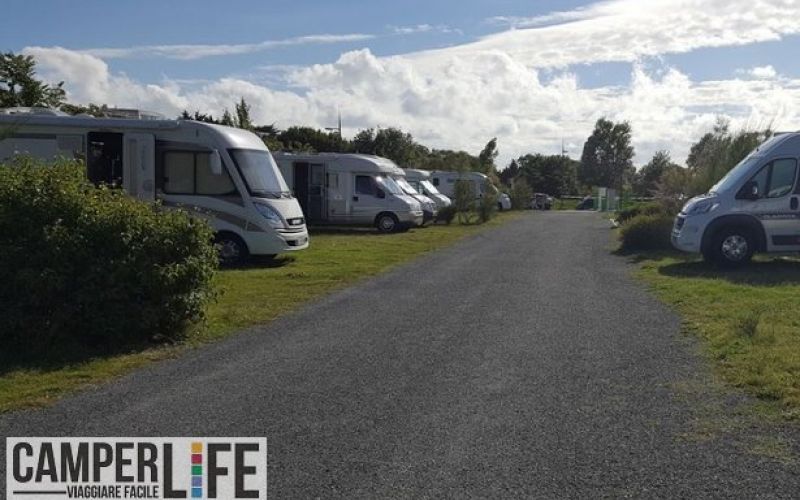 Area attrezzata vicino all'ippodromo con 51 piazzole e camper service. Accesso con tessera che viene rilasciata dal dispositivo di pagamento, che accetta solo bancomat o carta di credito. Apertura annuale.