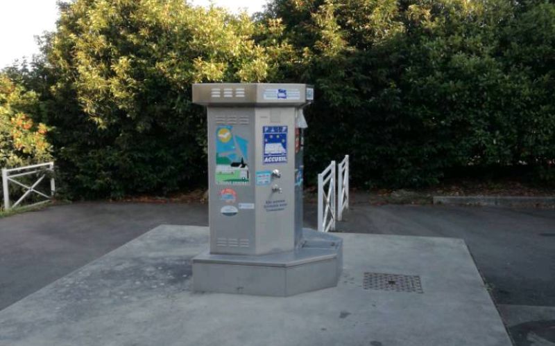 Area camper con 8 posti, accesso gratuito, servizi a pagamento. Si trova dietro il centro culturale e permette la sosta per una sola notte.
