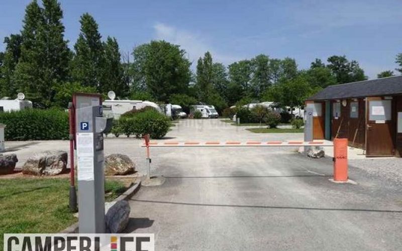 Area attrezzata con 26 piazzole ghiaiose, accesso con sbarre, presentarsi all'ufficio turistico per avere i gettoni per il CS. Numerosi servizi, apertura annuale.