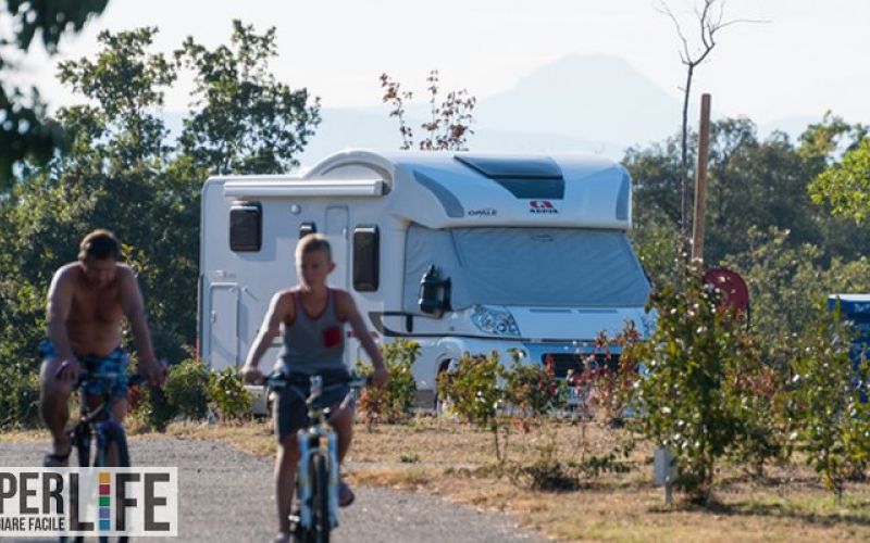 Campeggio con 40 piazzole parzialmente ombreggiate per tende, camper e caravan, a pochi minuti a piedi dal mare, aperto da aprile a settembre.
