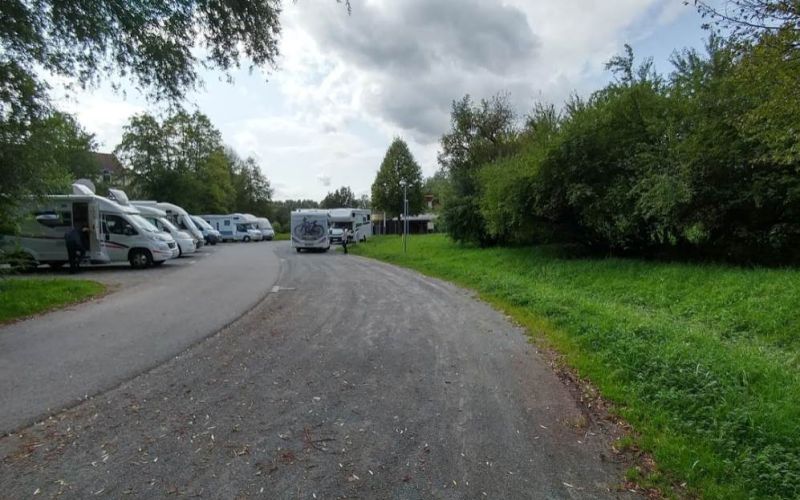 Area comunale a pagamento su ghiaia ed erba con spazi per circa 15 camper.