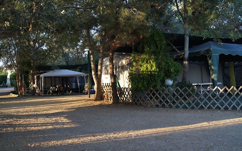 Area sosta all'interno del "Milos Camping" situato vicino al mare nel paese di Eretria, stazione balneare e zona archeologica. Da Chalkis direzione Eretria, 1 km prima del paese sulla destra.