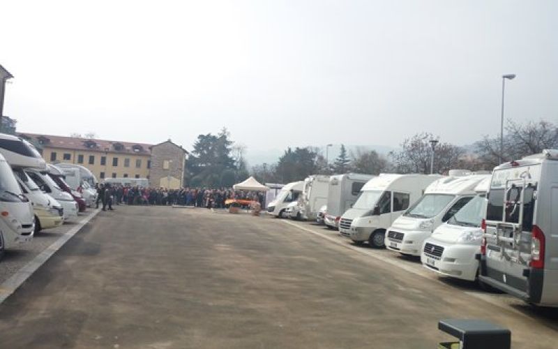 Area camper comunale situata a ridosso della Caserma, vicino al centro, sempre aperta, con 14 piazzole e 1 predisposta per diversamente abili, CS e 3 colonnine per approvvigionamento energia elettrica. Videosorvegliata, accesso con sbarra automatica. Sosta massima consentita 48 ore.