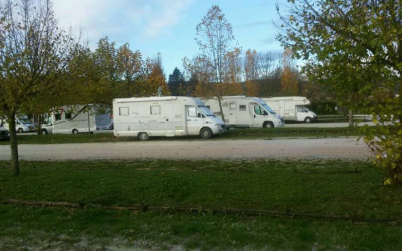 Area di sosta attrezzata per camper, su fondo ghiaia, parzialmente ombreggiata, situata presso Porta Guelfa, poco distante dal centro storico. Sempre disponibile.