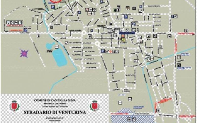 Area comunale attrezzata per 6 camper in Loc. Venturina. Sempre aperto, sosta gratuita, carico acqua a pagamento. Rumorosa per il traffico notturno.
