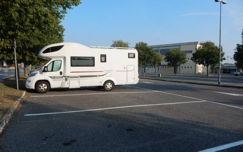 Area attrezzata comunale con 8 piazzole per camper nel parcheggio pubblico presso il Centro Sportivo Comunale "Baslenga". Le piazzole sono pianeggianti e su asfalto e nonostante sia adiacente alla strada che porta verso il centro del paese è tranquilla.