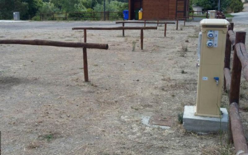 Area attrezzata comunale per 9 posti camper nel parcheggio attrezzato vicino alle Terme Romane, sulle sponde del fiume Tirso, sempre aperto.