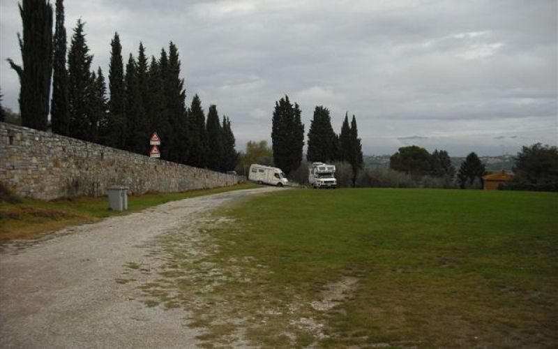 Zona ex stadio, segnalata in loco, subito sotto le mura ed adiacente alla statale, sempre aperta, vicinissima al paese, gratuita.