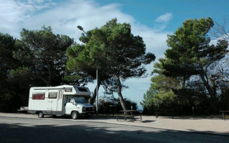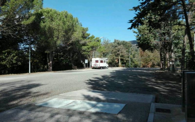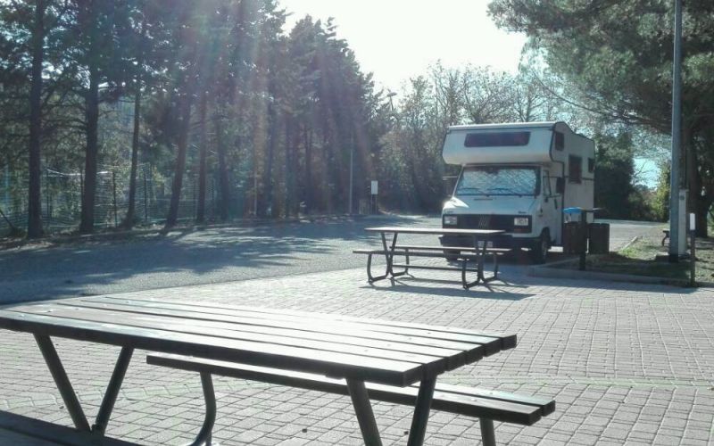 Area camper adiacente al campo sportivo, a 150 metri dal centro. 6 posti camper, sosta max 72 ore. Ombreggiati al pomeriggio in estate dai castagni del boschetto vicino, è dotata di area pic-nic