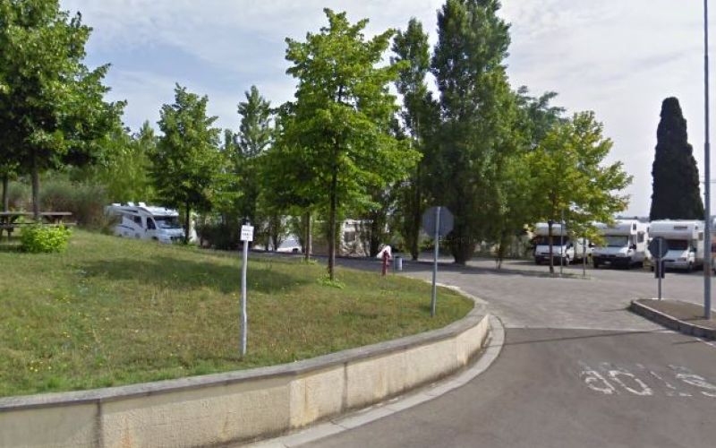 Area attrezzata con 30 posti su autobloccanti e asfalto, di fronte al cimitero, gratuita. Alberata e parzialmente recintata. Apertura annuale.
