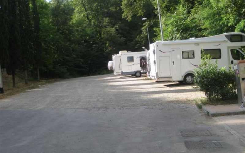 Area attrezzata per la sosta con 6 posti a disposizione per camper e caravan, in parte su asfalto e in parte su sterrato. A pagamento soltanto l'allaccio alla corrente elettrica. Aperto tutto l'anno.