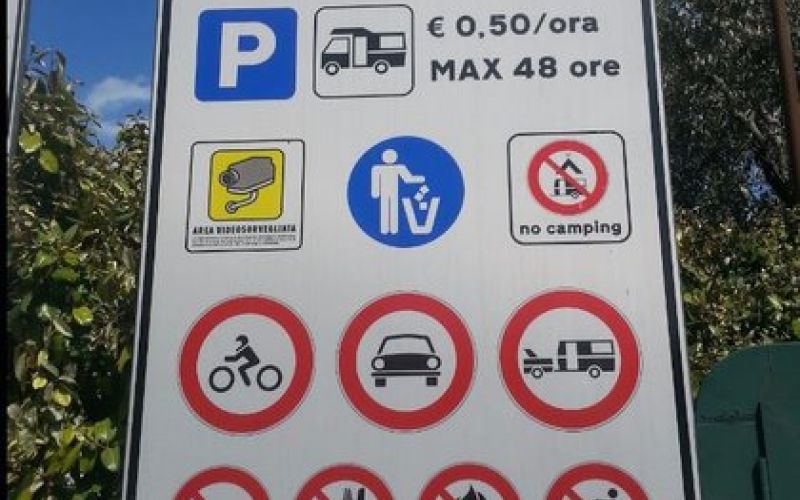 L'area attrezzata comunale dispone di 39 posti per camper. Asfaltata e con autobloccanti nelle piazzole, l’area di parcheggio camper consente una sosta di 48 ore. Aperta tutto l’anno, nel mese di novembre è impraticabile perché riservata al luna park.