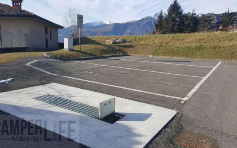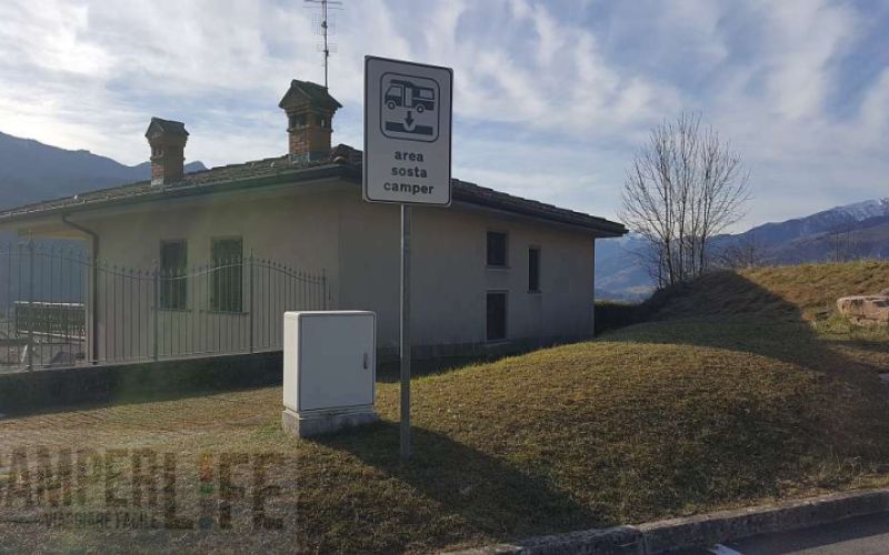 Area attrezzata comunale con 3 posti riservati su asfalto con servizi e altre 5 in comune con le auto, nel piccolo paese in Alta Valseriana. Sosta gratuita, servizi a pagamento, sosta max 72 ore. Per i servizi occorre chiedere al bar. Apertura annuale.