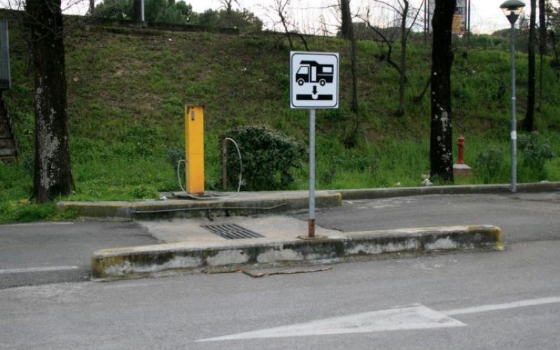 Area attrezzata camper comunale, su asfalto, parzialmente ombreggiata, vicina all'uscita SS675, ben segnalata in loco. Camper service disponibile. Sempre aperta.