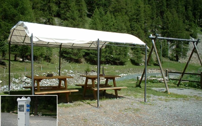 Campeggio con piazzole attrezzate su ghiaia, con solarium e altri servizi, vicino alla pista di fondo e alla fermata del bus gratuito per il centro di Livigno.