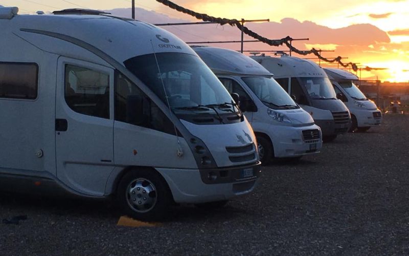 Area sosta presso il centro turistico Gran Lido Valerio, con piazzole attrezzate e spiaggia inclusa nel prezzo. Piscina e area relax. Apertura estiva.