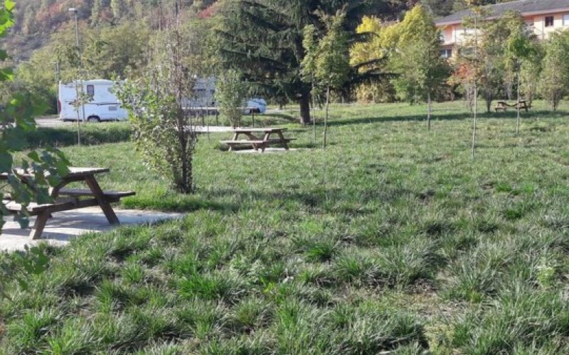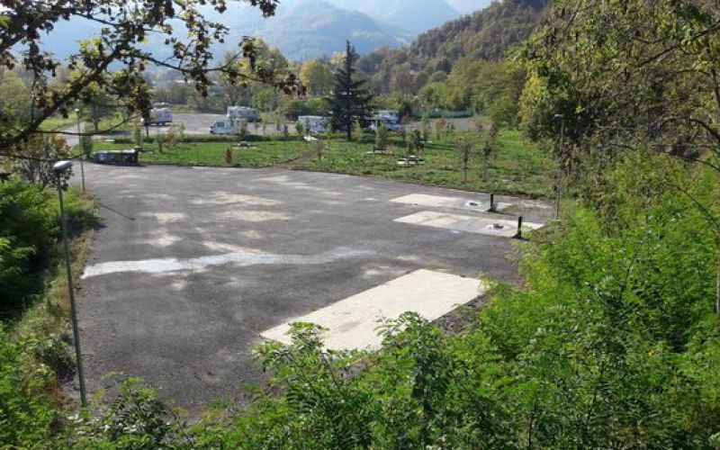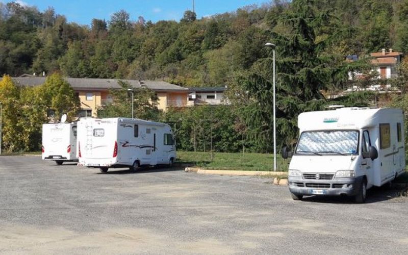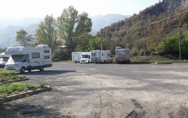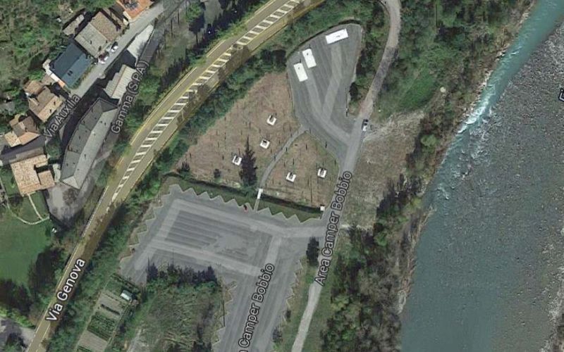 Area Camper Bobbio, area attrezzata comunale con 52 posti camper su asfalto, con servizi, parco giochi e area picnic a pochi metri dalla riva del fiume Trebbia. Apertura annuale. Pagamento presso macchinetta automatica.