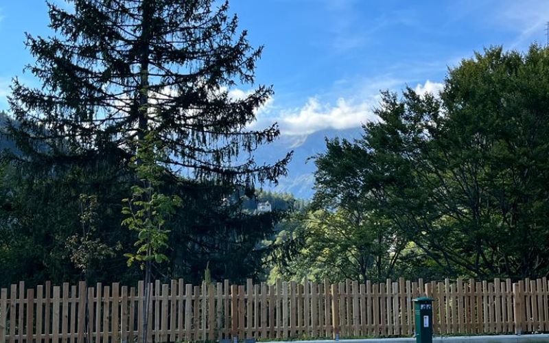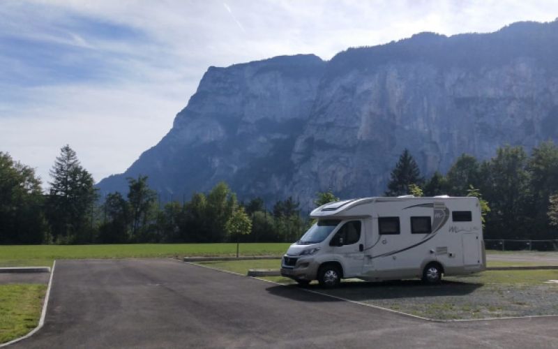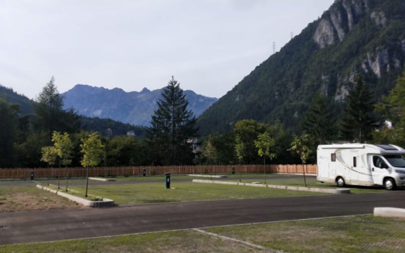 Il parcheggio attrezzato è stato realizzato nell’area del vecchio campo sportivo, una zona molto tranquilla che dista dal centro paese circa 1 km. Dispone di 16 piazzole su grigliato, suddivise due a due da un piccolo marciapiede, al centro del quale è posizionata la colonnina con prese elettriche e rubinetti per l’acqua. Un ampio spazio è riservato per lo scarico acque grigie, a fianco del quale si trova la colonnina per lo scarico dei serbatoi delle acque nere. L’accesso è regolato da una sbarra con apparecchio elettronico per l’emissione di ticket parcheggio. L’area è videosorvegliata.