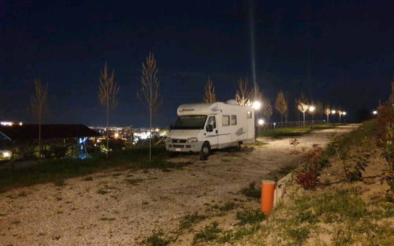 Sulle terrazze sono stati ricavate 25 ampie piazzole erbose di 60mq ciascuna, dotate di illuminazione, corsie di accesso e sosta per camper, punti acqua e luce.