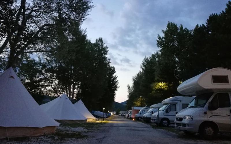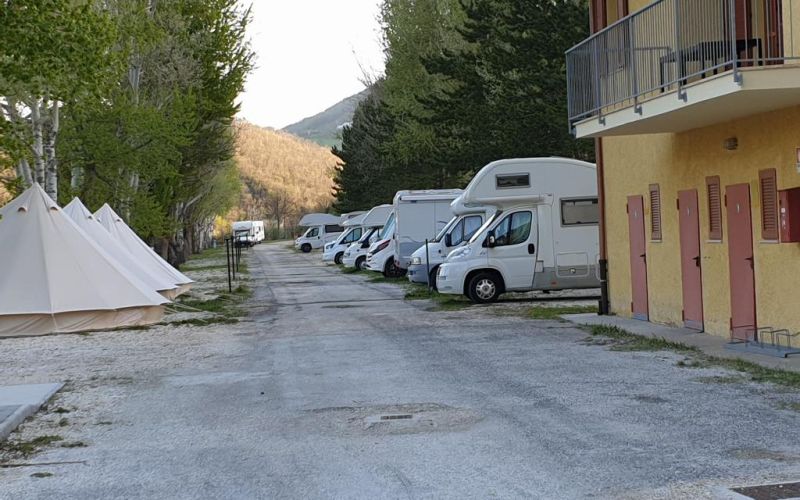 Camping B-SIDE CAMP all'interno del Parco dei Sibillini, dispone di piazzole su ghiaia con carico acqua in piazzola. Adatto per appassionati di pesca in lago e piacevoli passeggiate tra i monti e sul lungolago.
