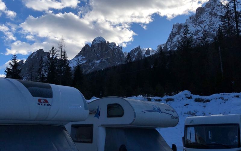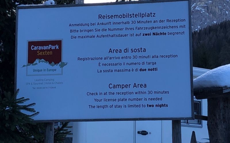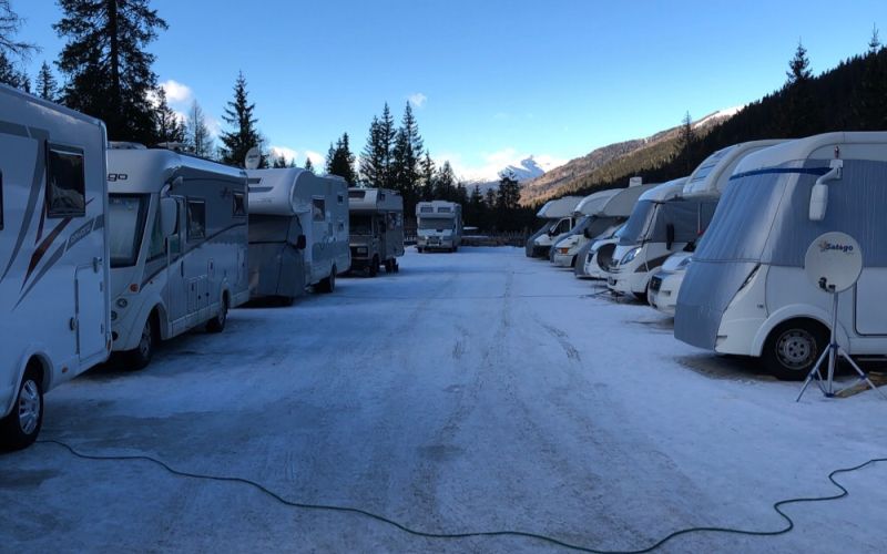 a pagamento per 35 caravan circa su un piazzale dedicato all'esterno del campeggio. Fondo piano, in ghiaia, privo di ombra. Utilizzabile tutto l'anno Il prezzo comprende tutte le persone, corrente elettrica, docce, carico e scarico acque. TEL.0474710444