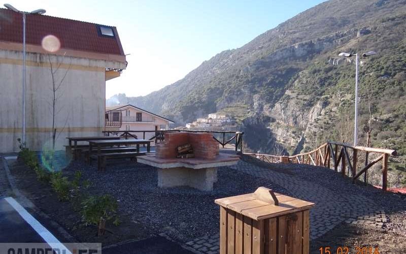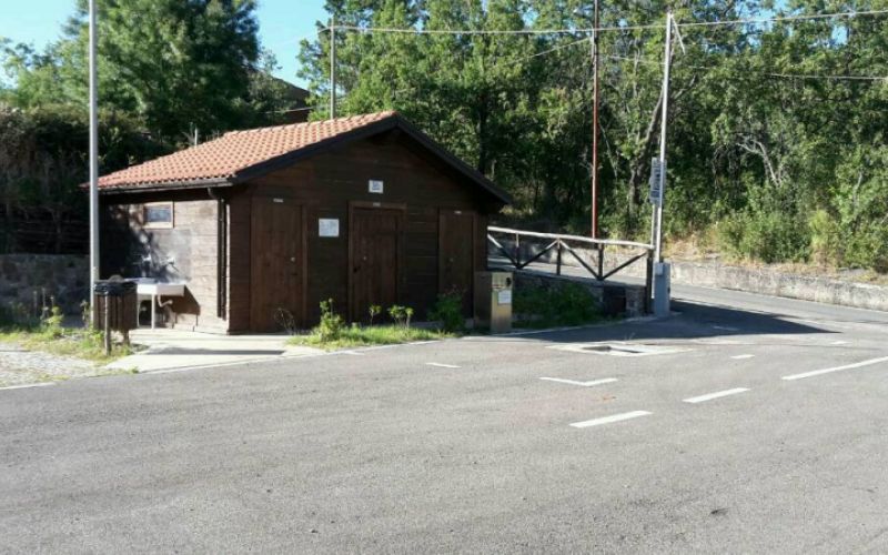 Area comunale Caravan Serraglio SAH, piazzole per 10 camper su asfalto e autobloccanti, con piccola area barbecue e pic-nic a ridosso del centro storico. Sempre aperta, sosta max 24h.