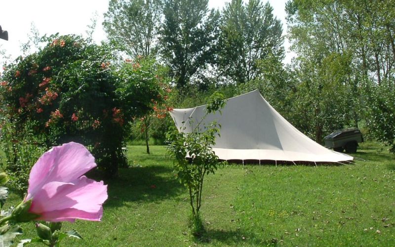 Area attrezzata all'interno dell'agriturismo Cascina Campora, 3 posti camper su fondo in erba dotati di allacciamento elettrico, carico/scarico acqua e servizi igienici con docce calde, lavandini e lavatrici. Animali domestici ammessi. A pochi metri offre un'area giochi per i più piccoli. Apertura annuale, su prenotazione.