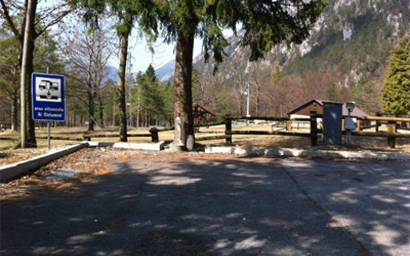 Area attrezzata comunale con 4 piazzole camper e caravan, su sterrato, presso il parcheggio del Ristorante Ciclamini. Camper service non disponibile in inverno, da novembre a marzo, causa gelo.