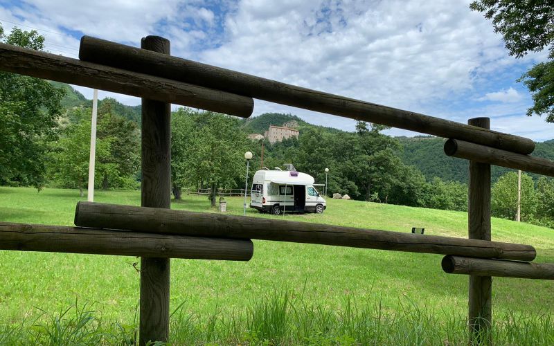 La parte alta dell’area è riservata ad una zona di sosta camper completa di scarico e allaccio acqua può ospitare fino a nove camper. Immersa nel verde è considerata dagli stessi camperisti una delle aree sosta più belle della zona.