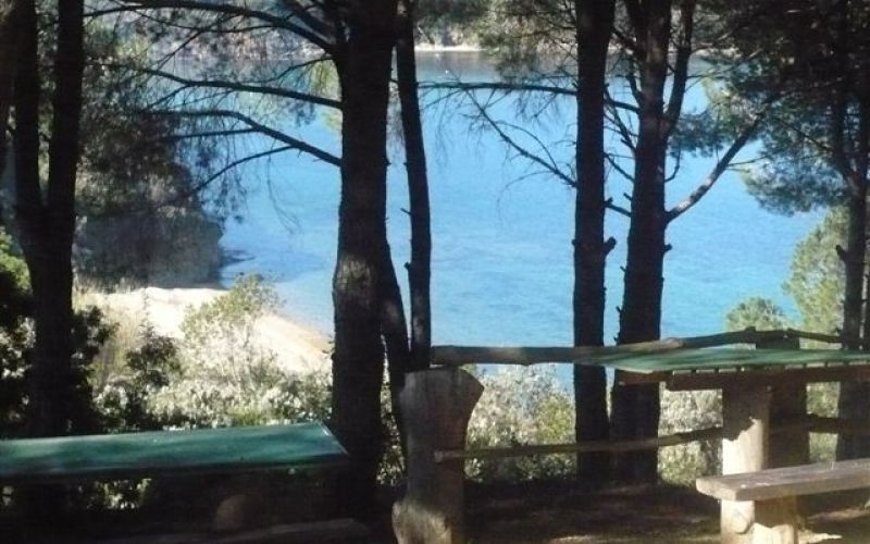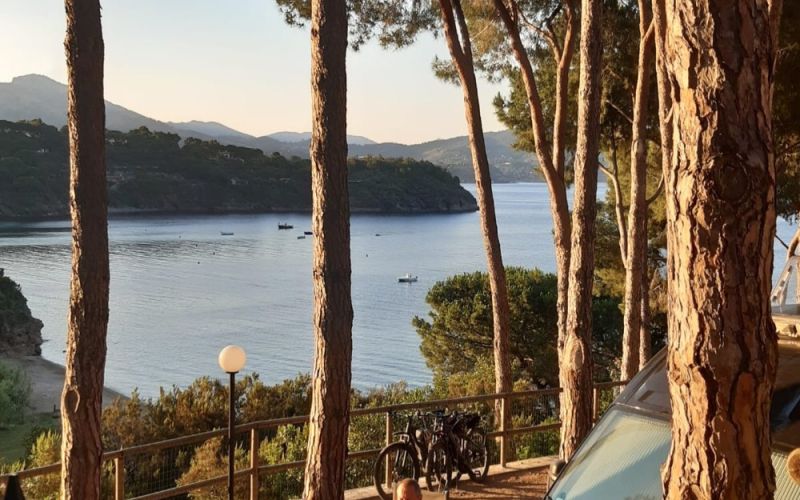 Area attrezzata Ferrato, sull'isola d'Elba: 25 posti camper su terra battuta,  ombreggiati, a 100 metri dalla spiaggia. Apertura stagionale (aprile/ottobre).