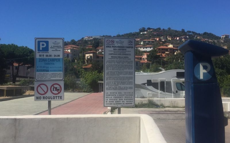 Area attrezzata con 30 posti per camper su autobloccanti, soleggiata, apertura annuale. A pochi metri si trovano spiagge attrezzate e libere.