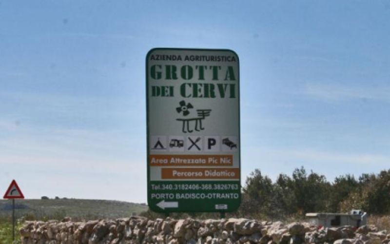 L'agriturismo Grotta dei Cervi è situato ad Otranto, in Puglia. L'area di sosta camper è completamente immersa nel verde con vista mare, dotata di tutti i servizi: luce, acqua corrente, servizi igienici, piazzole di sosta all’ombra, acqua calda da energia solare. Animali domestici ammessi. Dall'area sosta è possibile raggiungere, a piedi o utilizzando la navetta, le varie discese a mare e la spiaggia di Porto Badisco. Apertura estiva da aprile a ottobre.