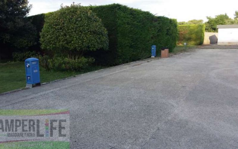 L'area di sosta camper si trova presso lo spazio di pertinenza esterno dell'hotel, su un piazzale completamente pianeggiante, recintato e circondato da alte siepi. L'accesso è controllato da un cancello aperto dalla reception dell'hotel 24h. L'area è dotata di colonnine per allaccio elettrico e idrico, pozzetto per scarico acque e zona lavaggio mezzi. Apertura annuale.