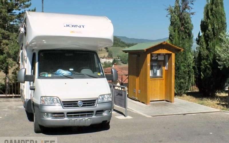 Area per 15 camper su asfalto, parzialmente ombreggiata, sempre aperta. Nello stesso parcheggio si trova anche di un distributore di acqua potabile.