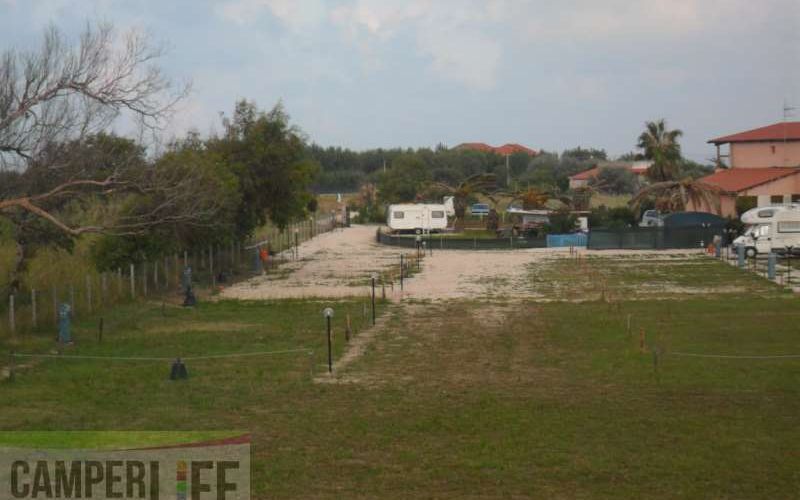 Area con 36 posti camper su ghiaia ed erba a 100 metri dal mare e 2 km dall'abitato. Con attacco energia elettrica e docce, illuminata e videosorvegliata con barriera all'ingresso. Carico di acqua pulita e potabile, scarico tramite tombino e per cassetta WC, lavandini per vettovaglie, parco giochi per i più piccini, un grande prato per girare in bici e pista ciclabile fino al paese. Per gli amanti della pesca, nei pressi c'è un fiume. Apertura annuale.