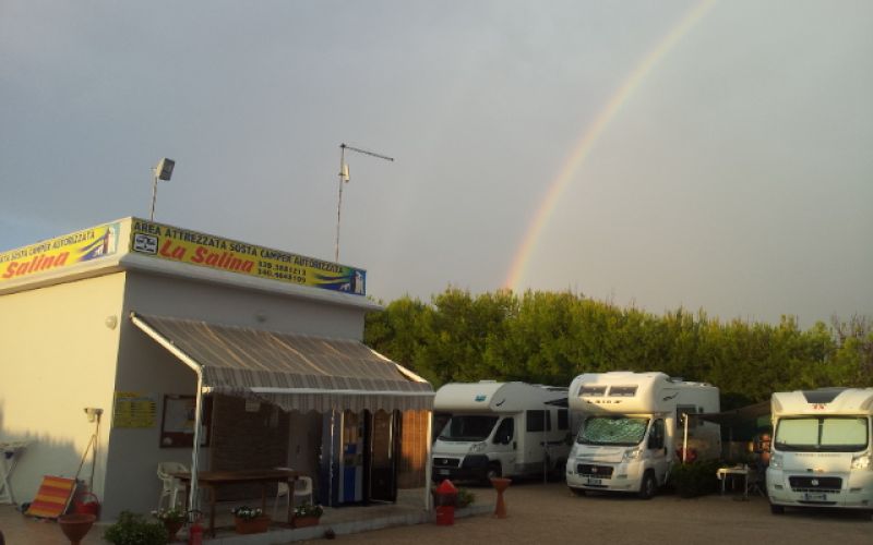 L'Area attrezzata La Salina dispone di 30 piazzole per la sosta di camper e caravan e si trova tra la spiaggia sul mar Ionio e il Parco della Salina. Resta aperta da giugno a settembre.