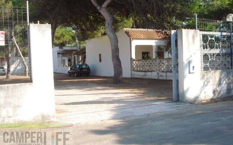 Area attrezzata per la sosta di camper e caravan con 10 piazzole ombreggiate da pini alti, illuminata, com servizi minimi. A 300 m dal mare tra Torre dell'Orso.