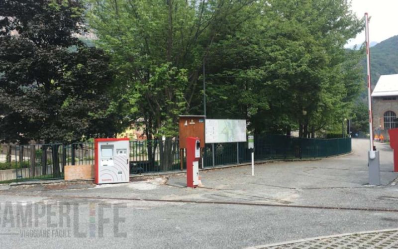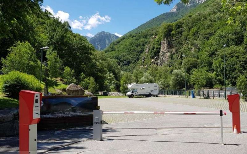 Area attrezzata comunale per 18 camper e caravan, pavimentata e in piano, camper service disponibile sulla strada di accesso. Sosta consentita max 48 ore, videosorveglianza.