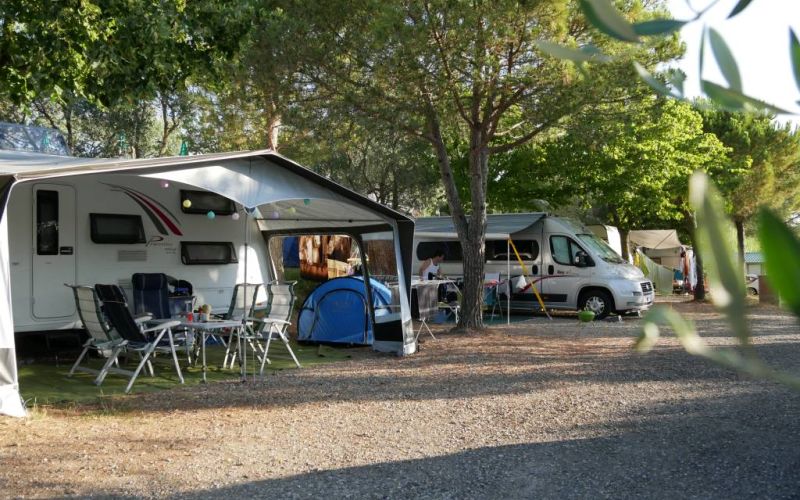 Il Camping Le Soline dispone di piazzole su fondo erboso per camper e caravan su una superficie in terrazze. Apertura annuale. Blocco servizi igienici, con acqua calda, wc per disabili e lavanderia a gettone; lavatoio all'aperto per stoviglie e biancheria. Apertura annuale, nel periodo invernale i servizi sono riscaldati.