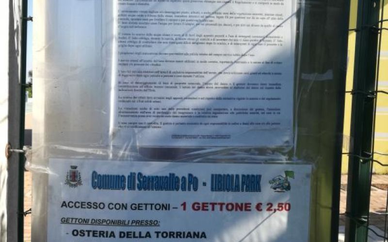 Oct 08 Commenti Libiola park - Serravalle a Po Mantova Lombardia Area attrezzata comunale in fraz. Libiola, con 24 piazzole per camper su fondo pavimentato. A pagamento. Sempre aperta Suggerisci una modifica Foto Dettagli Posti camper: 24 Struttura convenzionata: SI Bandiera gialla: NO Tipologia: Area attrezzata Posizione: Fiume Caratteristiche Allacciamento elettrico Animali ammessi Apertura annuale Area a pagamento Carico acqua Disabili Docce calde Fondo pavimentato Illuminato Impianto wc wash Ingresso controllato Recinzione Scarico cassetta wc Scarico pozzeto Servizi igenici con wc Indirizzo Indirizzo: Via gli Zingari Comune: Serravalle a Po Provincia: Mantova Regione: Lombardia Nazione: Italia Coordinate: 45° 3' 44.0784" N | 11° 3' 41.5944" E Come arrivare: L'area di sosta è perfettamente segnalata con cartelli stradali, il primo presente ovviamente sulla strada principale ossia la SP 482, poi altri vi portano senza errori all'ingresso. In ogni caso è presso il campo sportivo Contatti Sito web: http://www.comune.serravalleapo.mn.it Altri contatti telefonici: +39 3711850569