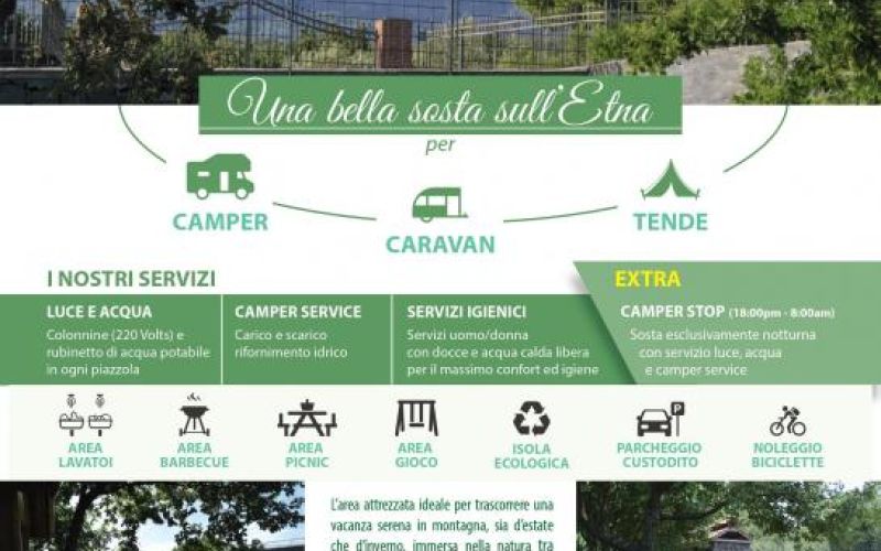 La Mons Gibel Camping Park dispone di 31 piazzole ed offre numeri servizi interni, quali: enrgia elettrica 6 A e acqua potabile in piazzola, camper service, servizi igienici con docce e acqua calda libera, area lavatoi con lava panni, lava piatti e lava piedi, barbecue con sei postazioni autonome, area pic nic con tavoli e panche in legno, area gioco per i più piccoli, parcheggio interno riservato ai nostri clienti per auto e moto, isola ecologica per la raccolta differenziata.