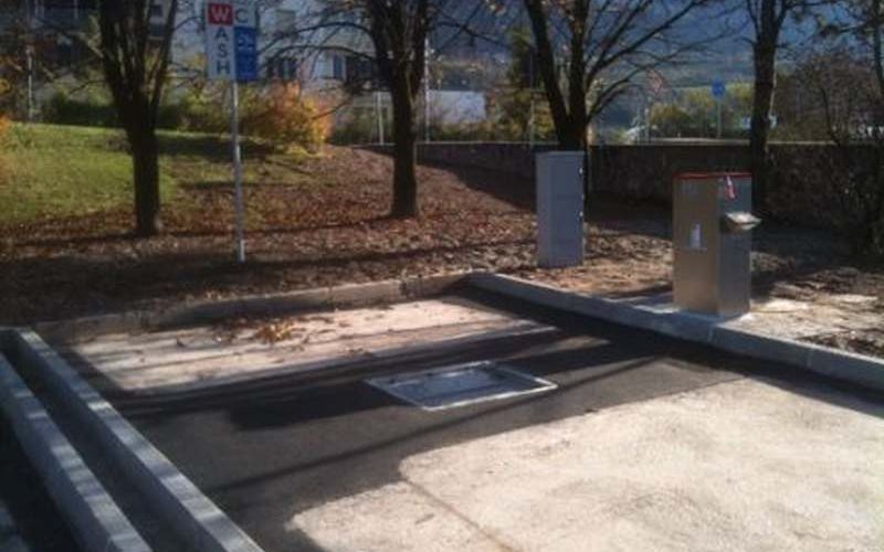 L'area attrezzata comunale Neumarkt dispone di 10 piazzole, su asfalto, con servizi. Dista circa 400m dal centro storico e 200m dallo Stadio del ghiaccio (Würtharena) e dal Lido (apertura estiva). Apertura annuale. Sosta consentita per massimo 72 ore.