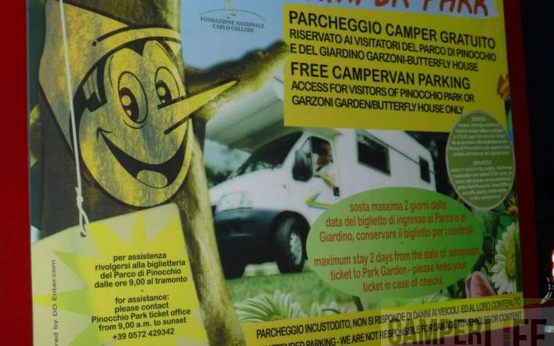 Mar 31 Commenti Parco di Pinocchio - Pescia Pistoia Toscana L'area del parco di Pinocchio a Collodi, è gratuita per 48 ore esclusi i servizi, fa fede la data di acquisto del biglietto di ingresso al Parco di Pinocchio. Apertura annuale. Il Parco è convenzionato con il CamperLife Club. Vedi altre informazioni. Suggerisci una modifica Foto Dettagli Posti camper: 6 Struttura convenzionata: SI Bandiera gialla: NO Tipologia: Area attrezzata Posizione: Posizione collina Caratteristiche Accesso gratuito Allacciamento elettrico Apertura annuale Area convenzionata Carico acqua Illuminato Scarico cassetta wc Scarico pozzeto Indirizzo Indirizzo: Loc. Collodi CAP: 51012 Comune: Pescia Provincia: Pistoia Regione: Toscana Nazione: Italia Coordinate: 43° 53' 56.94" N | 10° 39' 7.524" E Come arrivare: Contatti