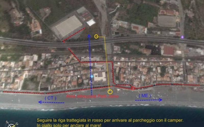 Sep 16 Commenti Park Jonio - Roccalumera Messina Sicilia Park Jonio, area attrezzata per 65 posti in centro paese, a 250 m dal mare, nelle vicinanze di Taormina e di Messina. Suggerisci una modifica Foto Dettagli Struttura convenzionata: SI Bandiera gialla: NO Tipologia: Area attrezzata Posizione: Mare Caratteristiche Allacciamento elettrico Animali ammessi Area a pagamento Bar Carico acqua Docce calde Illuminato Impianto wc wash Ingresso controllato Ristorante Scarico cassetta wc Scarico pozzeto Servizi igenici con wc Servizi wifi Indirizzo Indirizzo: Via Collegio CAP: 98027 Comune: Roccalumera Provincia: Messina Regione: Sicilia Nazione: Italia Coordinate: 37° 58' 49.9764" N | 15° 23' 46.9068" E Come arrivare: Contatti Email: info@park-jonio.it Sito web: http://www.park-jonio.it/ Altri contatti telefonici: +393341202290