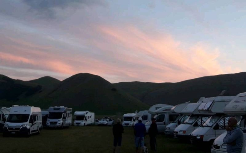 Possibilità di sosta nel parcheggio comunale gratuito su fondo erboso nella piana. Sempre aperto