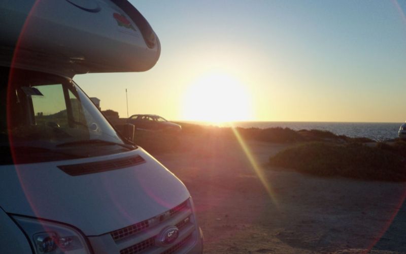 Parcheggio libero su terra battuta accanto alla scogliera basaltica con vista dello stretto di Portoscuso. Ventilato, con piccole spiagge tra le colate laviche. Nessun divieto notturno.