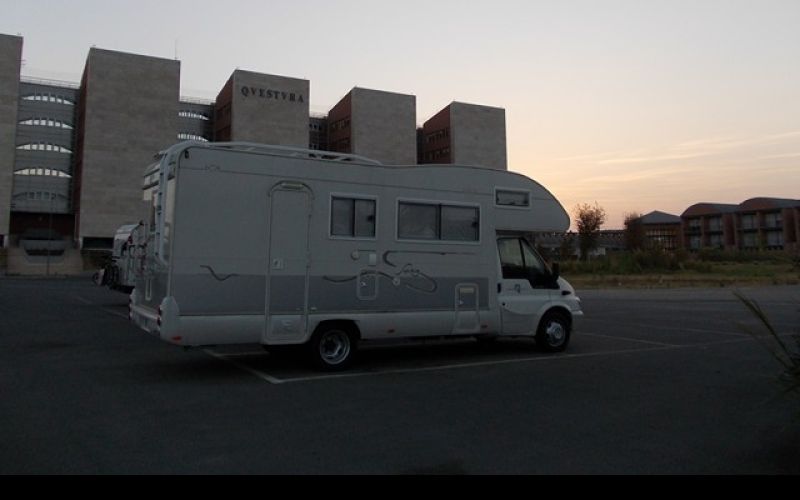 Punto sosta nel parcheggio davanti la caserma VVFF e alla Questura. Asfaltato, vicino al centro. Gratuito e sempre aperto.