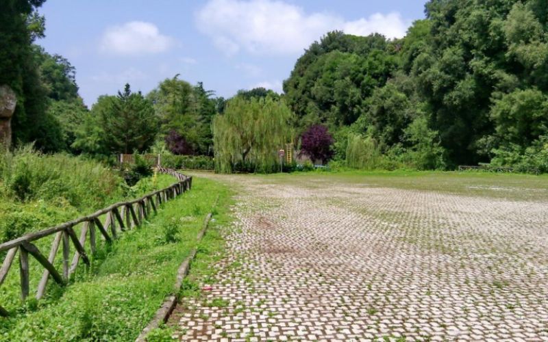 Parcheggio idoneo alla sosta camper, parallelo alla Via Cassia, posto di fronte l'anfiteatro. Molto ampio e pianeggiante, parzialmente ombreggiato e pavimentato.
